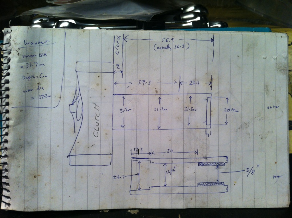 I came across this by accident earlier - sketch detailing the shaft that extends out the back of the clutch & sits in the carrier bearings. Don't take any measurements as gospel but it went together ok & still goes