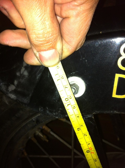 Second vertical (bolted to rear of forks is again 10 & 1/4 inch. Measuring up from the bottom, it's drilled at 4 & 1/4 inch point to take 2nd fork fixing.
