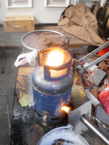 I have been waylaid by projects other than diesel-bike. Now I am casting aluminium in a waste-oil powered furnace. Yesterday I got fuel-air right and let rip. Molten scrap ali just run off into cake trays for now - lots of aluminium buns! Next I need to make something fancy for the bike - maybe an alloy radiator cowl? Perhaps a bit big for first attempts at sand casting, so maybe a dash-board for boost gauge and water temp meter. All good fun.