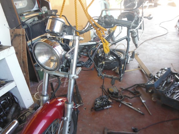 This is the motorcycle I am going to convert. My wife says that I am totaly insame, to destroy a nice Motorcycle, whitch runs quite, fast, without vibrations for something slow, smoking, agly and ratteling.