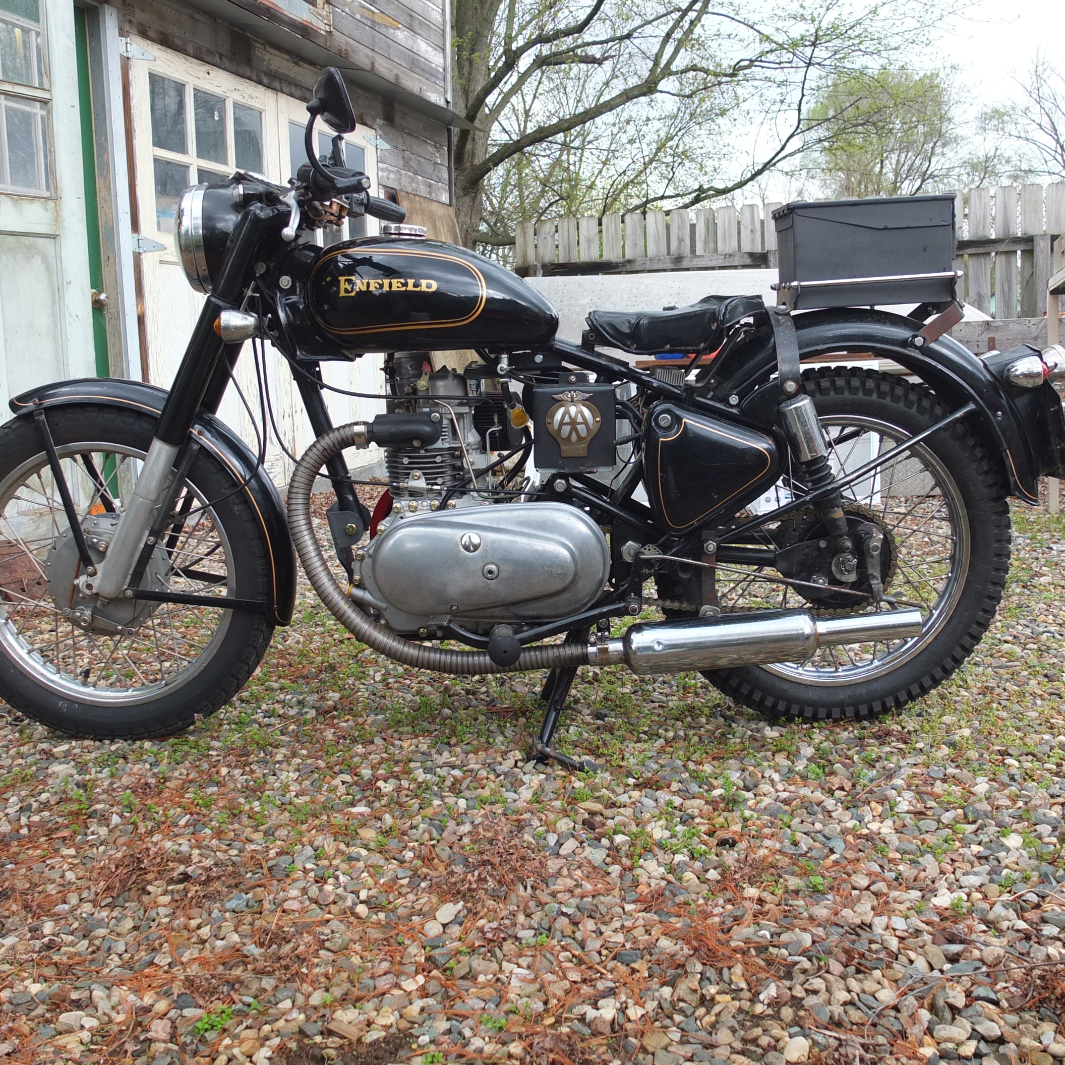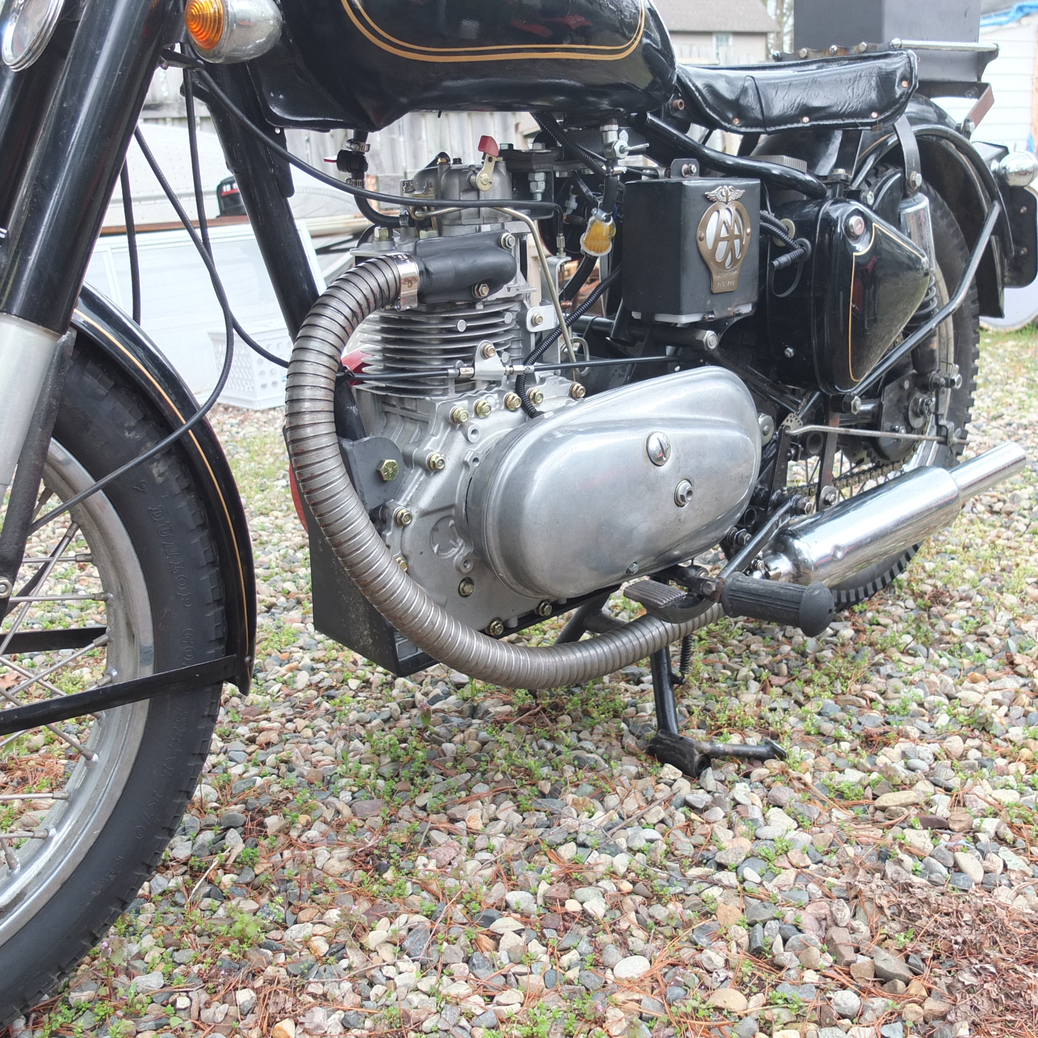 Great to see your completed bike. Looks GREAT!!! I did in fact get your call when you were in town the other week and tried both numbers I had for you in the hope that I could catch you while you were here to see both you and the bike, but no response from either number. I'd love to see it up close and personal. If you get back this direction, let's arrange to meet (you've got my number). Or, I'd be happy to come your direction as well. Perhaps on one of the Enfields. And I though of you just last weekend as I was trying to get a patient admitted to the Coldwater hospital (sadly, no open beds).