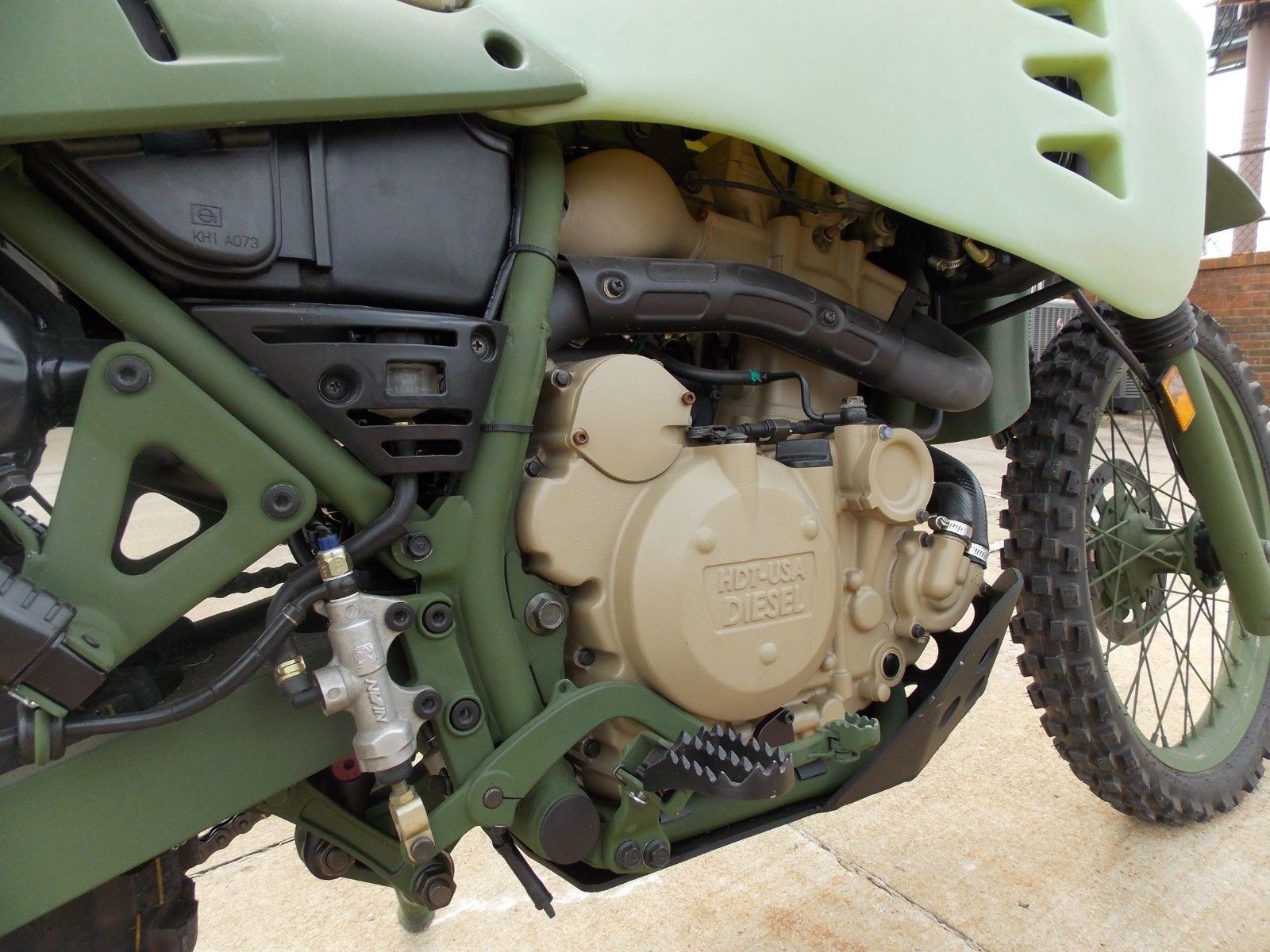 This is the Kawasaki KLR 650 Platform that was transformed by Hayes Diversified for Military Standards including ENGINE runs off the following multi-fuels: Diesel, kerosene, JP4, JP5, JP8 (Not Gasoline). These 2 were stored and never used by our personnel and we have since converted to other off road vehicles. $200 Deposit via paypal due within 48 hours of winning bid. Mileage of 66 is correct. We have CLEAR Title.